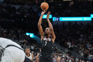 本场比赛,杜兰特首发出战33分钟,投篮12中7,三分球3中1,罚球9中8,拿下23分5篮板4助攻2盖帽的数据,正负值-12。