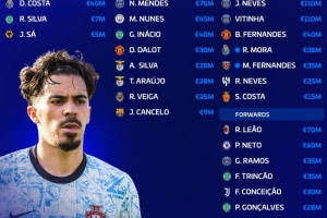 若昂·内维斯(1.1亿欧)、维蒂尼亚(1.1亿欧)、布鲁诺·费尔南德斯(4000万欧)、莫拉(3800万欧)、马特乌斯·费尔南德斯(3500万欧)、鲁本·内维斯(2500万欧)、萨姆·科斯塔(1500万欧)
