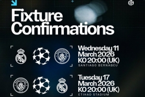 体育资讯2月27日讯 欧冠1/8决赛,皇马对阵曼城,两回合比赛开球时间已经确定。