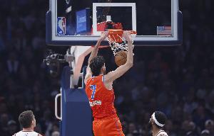 体育资讯2月28日讯 雷霆主场127-121加时险胜掘金。赛后,雷霆球员霍姆格伦接受媒体采访。