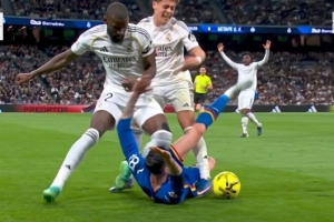 “周一晚上的伯纳乌球场,在对阵赫塔费的第27分钟:吕迪格膝盖冲向已经倒地的对手迭戈·里科,正中对方脸部。这已经不仅仅是一次粗野犯规,这简直是一场“刺杀”。这再次表明在极端情况下,吕迪格根本无法控制自己,这也是他不该随队参加世界杯的原因!”