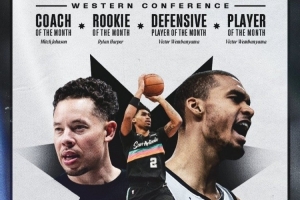 全是你们的!马刺包揽西部月最佳球员/教练/新秀 NBA历史首队